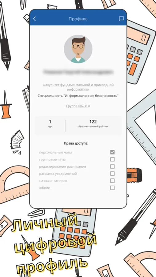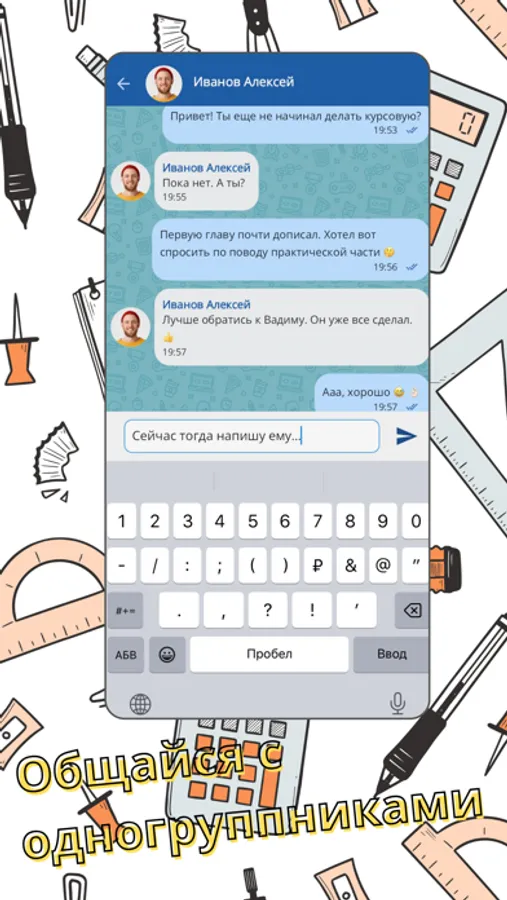Позволяет общаться обучающимся и сотрудникам в персональных и групповых чатах, получать новости об учебной и внеучебной жизни университета.