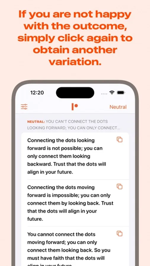 - User-Friendly Interface: Our intuitive design makes it a breeze to navigate the app. Simply input your text, and watch as it's transformed into a new, unique version.