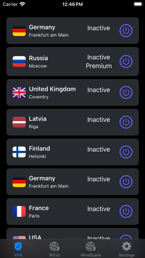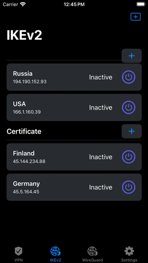 Profile List: All created VPN profiles are displayed in a convenient list for quick access and management.
