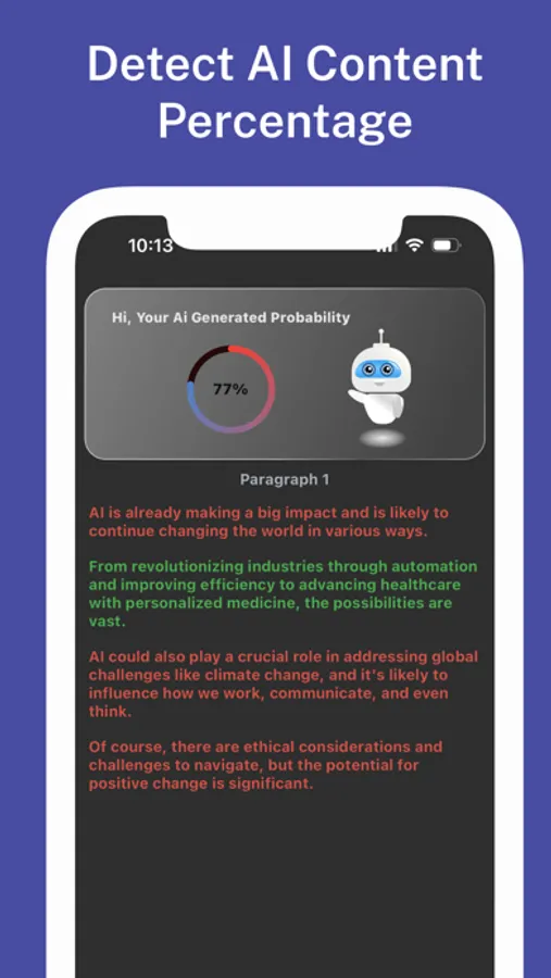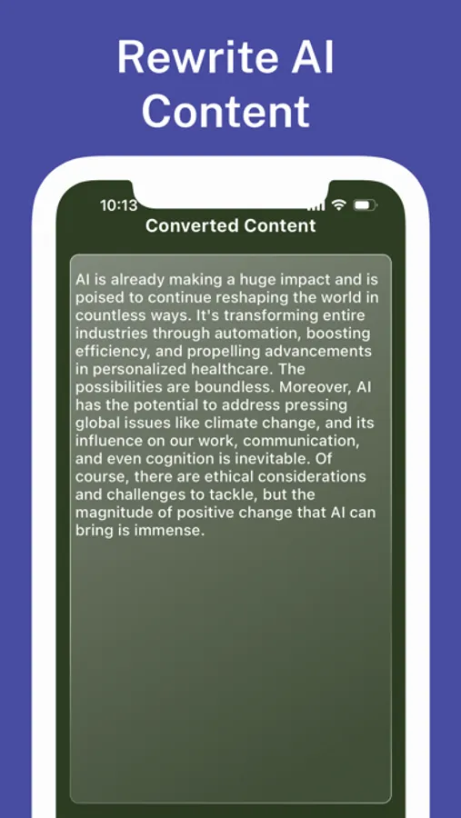 VERSATILE USE CASES:- Whether you're a journalist, a content writer, or just someone who values genuine communication, ZeroAi has your back. Easily convert the AI content to a real form using our app