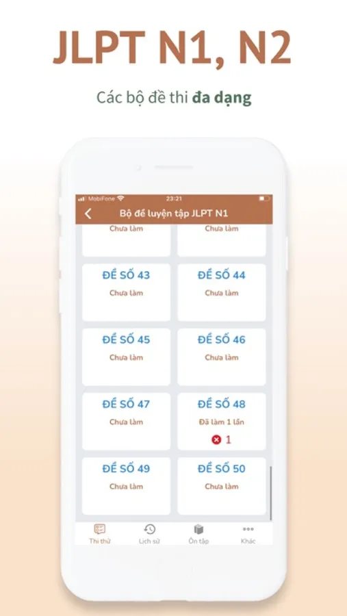 1. Bộ đề sẵn có: Ứng dụng cung cấp cho người dùng các bộ đề thi luyện tập theo kỳ thi JLPT N1, bao gồm các phần từ vựng, chữ Hán, ngữ pháp và bài đọc. Bạn có thể lựa chọn và làm các bộ đề sẵn có này để rèn kỹ năng và kiến thức của mình.