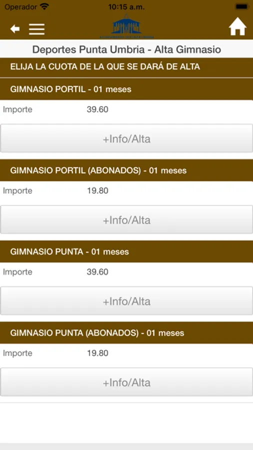 - Cursos y actividades en los que está inscrito (con posibilidad de consulta de situación de pagos y posibilidad de darse de baja).