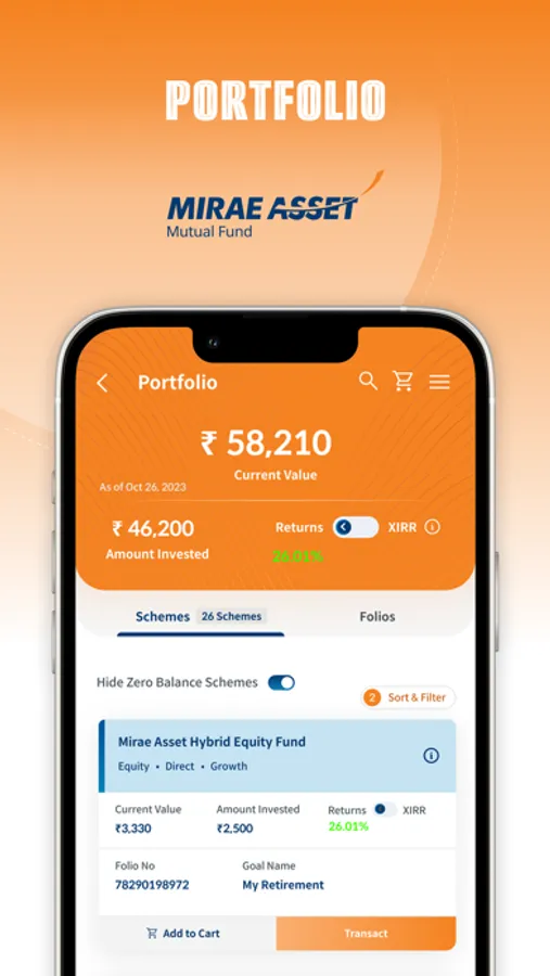 Welcome to Mirae Asset Mutual Fund’s Investor App. Fast, Simple, Paperless investments in just few minutes.