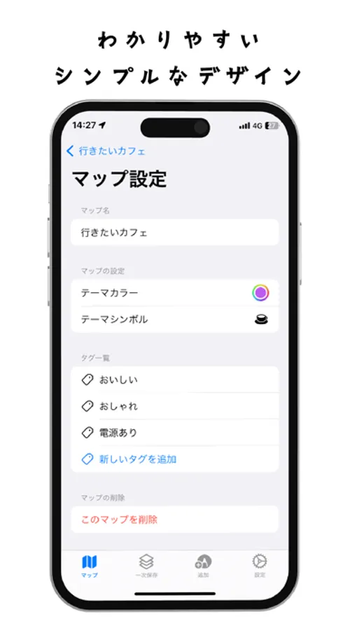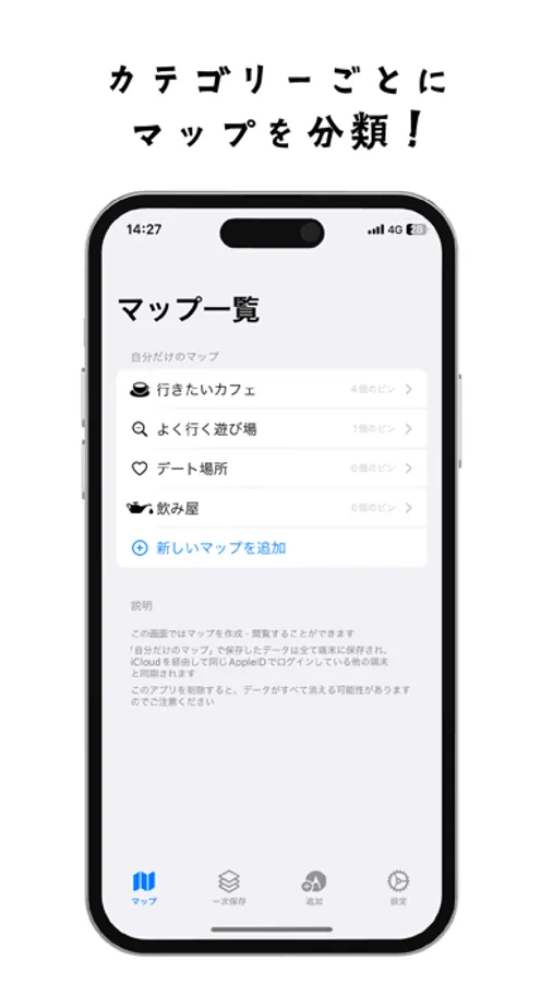「自分だけのマップ」に保存したデータは全て端末に保存されます。