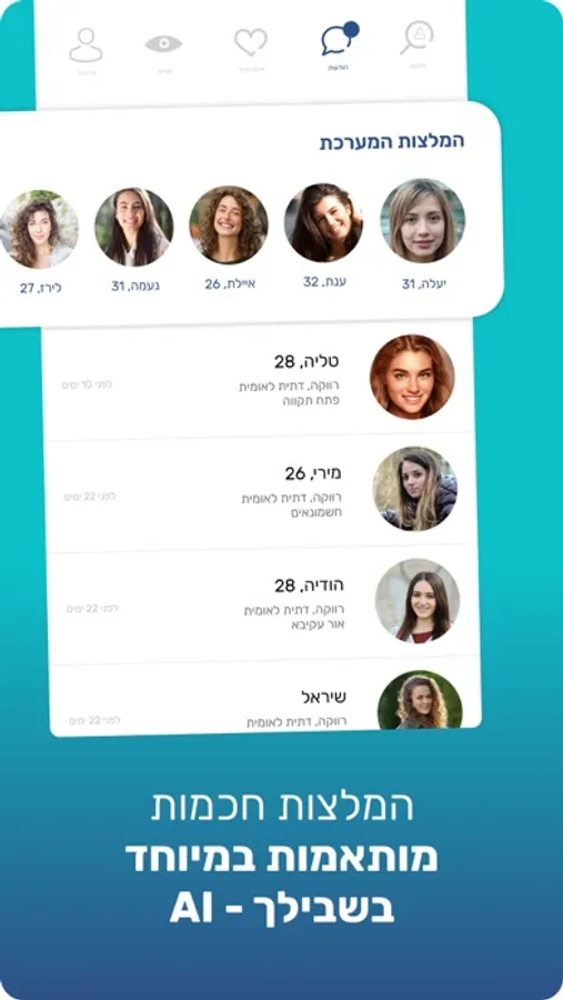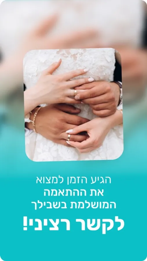 היחידה עם אלגוריתם חכם שעוזר לכם להכיר ולמצוא את מי שהכי מתאים לכם על בסיס חברים ותחומי עניין משותפים, תחביבים וכל מה שבאמת יכול לגרום לכם למצוא את הפרטנר המושלם למטרת קשר רציני וחתונה.