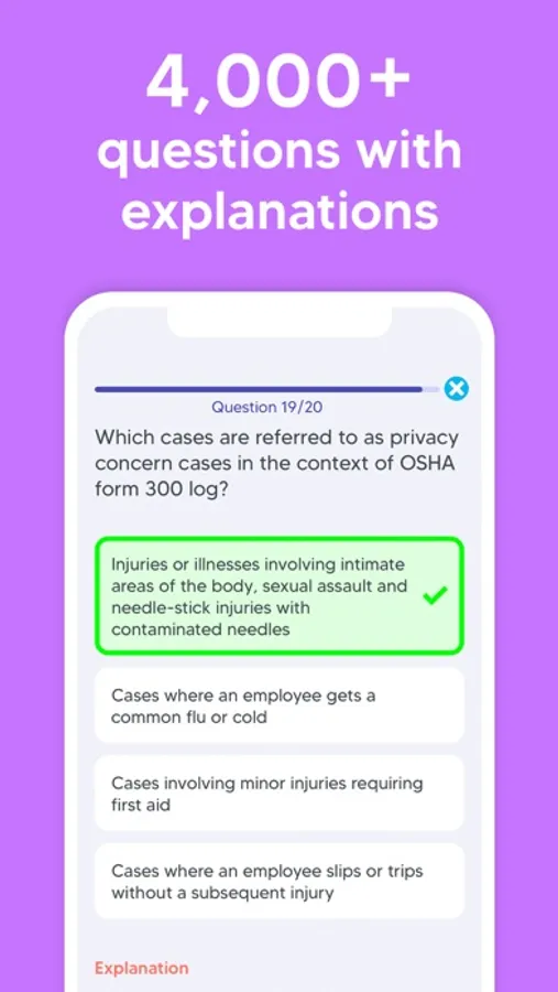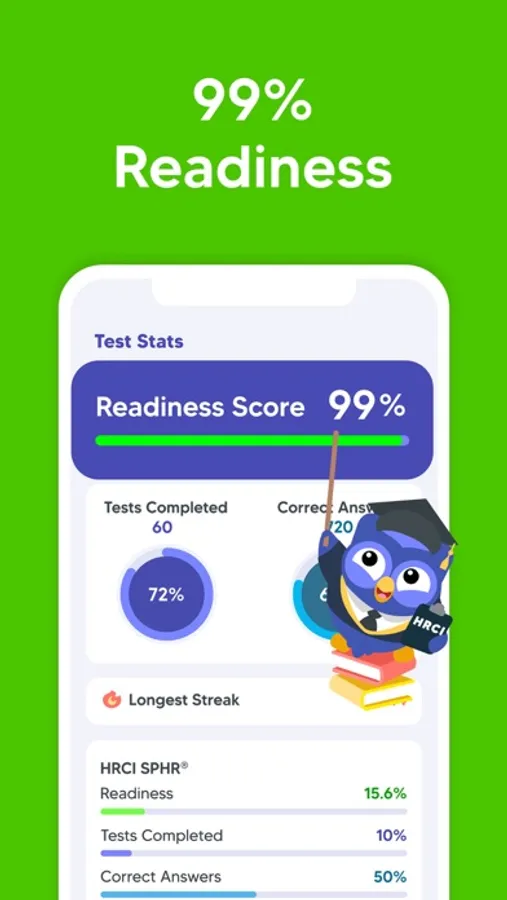 Additionally, our mobile app provides a personalized study plan based on your skill level, study frequency, and target test date. Not sure when you want to take the exam? You can adjust your study plan as often as you like. Our proprietary readiness score will help you determine when you’re ready to take the real exam and pass with a high score on your first try.