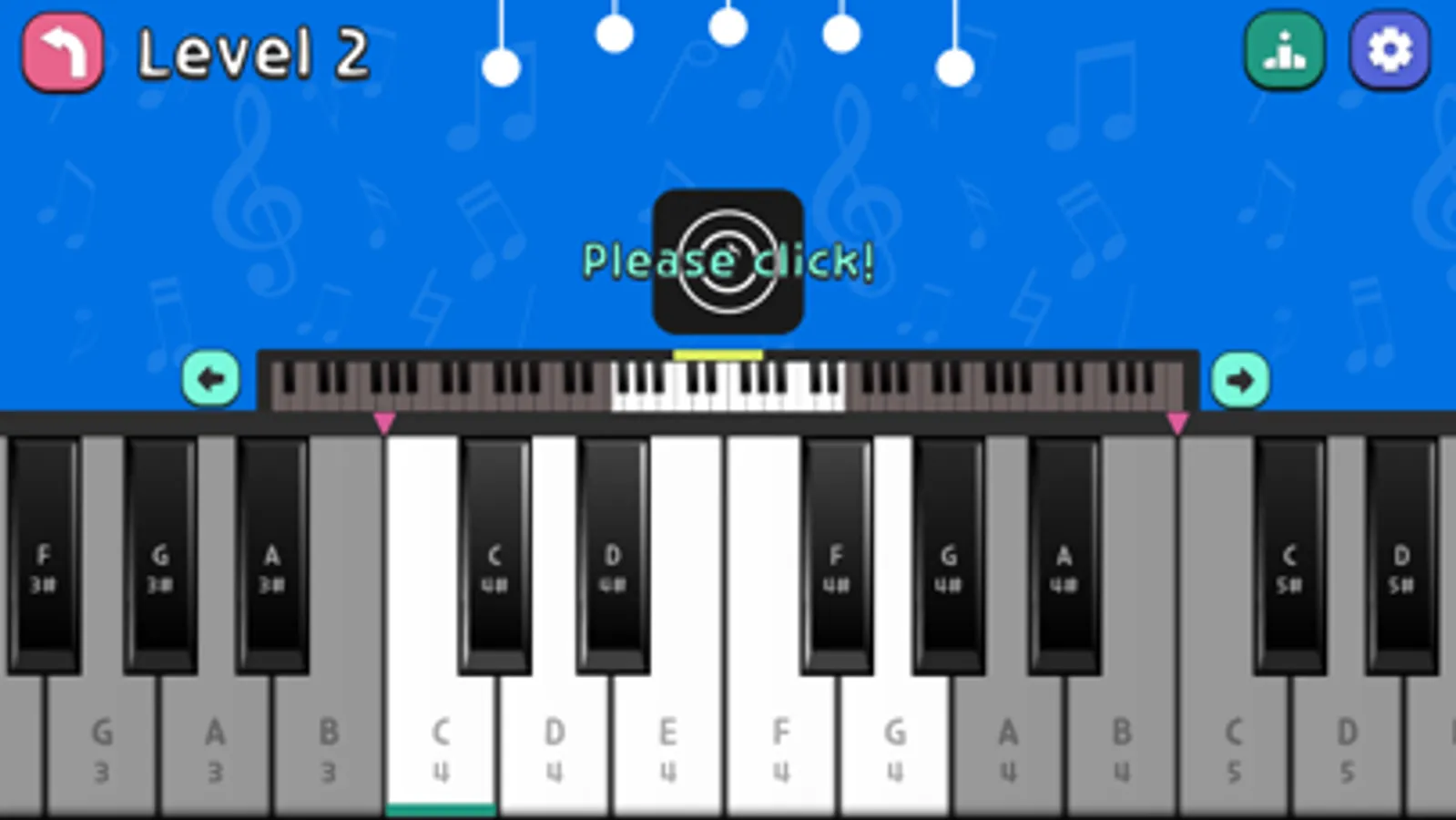 The number of piano keys available increases according to levels 1 to 5!
