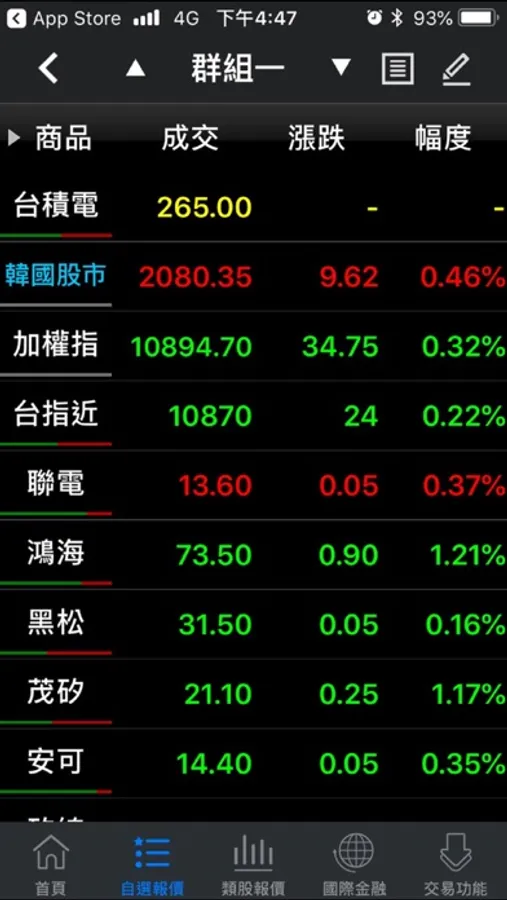 -個人化專屬自選報價功能,提供五個群組,150檔商品設定功能。