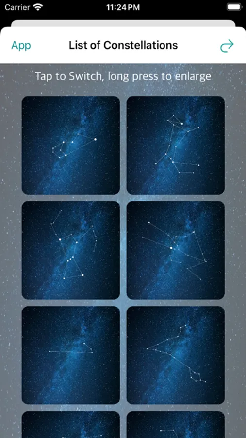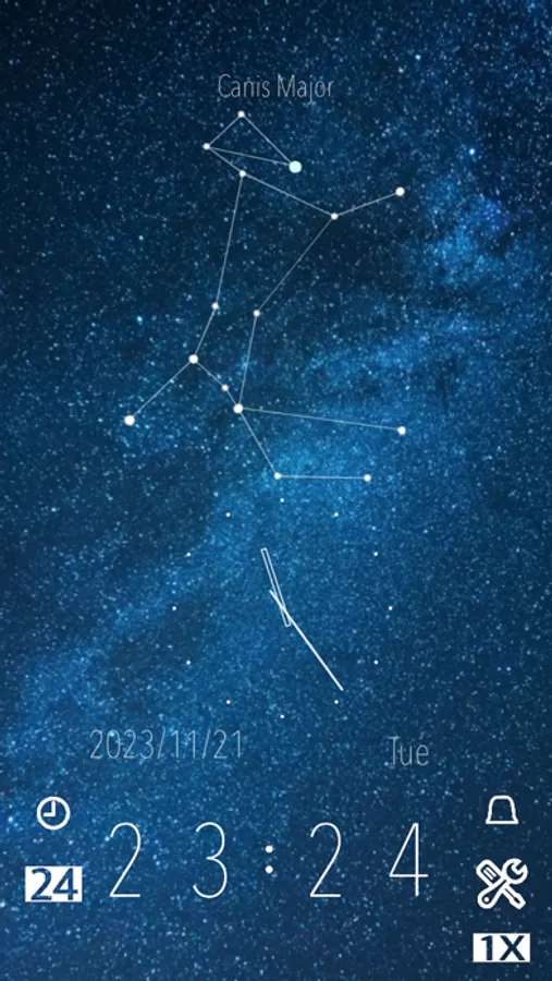 The analog clock and constellations can be zoomed in and out with two fingers.