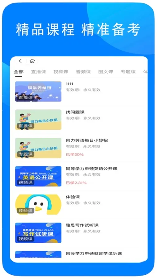 拥有直播,录播,题库等功能,适合教育机构或企业运营的在线教育平台使用
