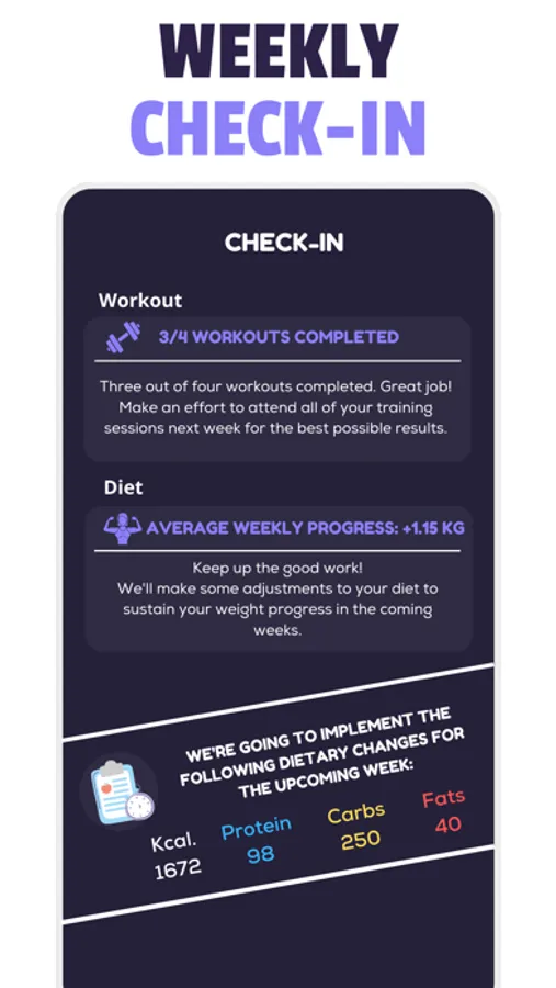 Stay on course with weekly check-ins. Celebrate milestones and make adjustments for even better results.