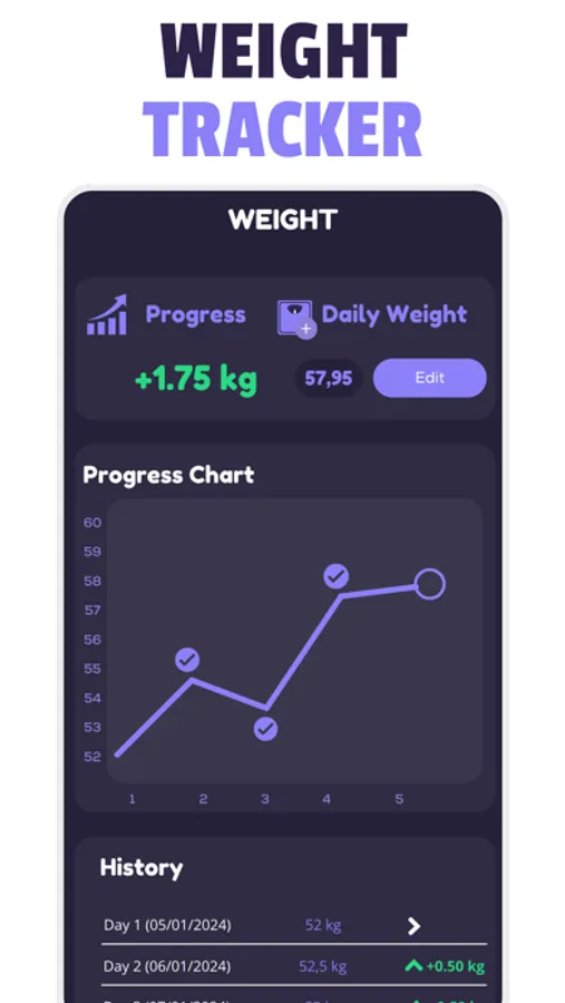 Monitor your weight gain journey effortlessly with our intuitive tracker. Stay motivated with progress updates.