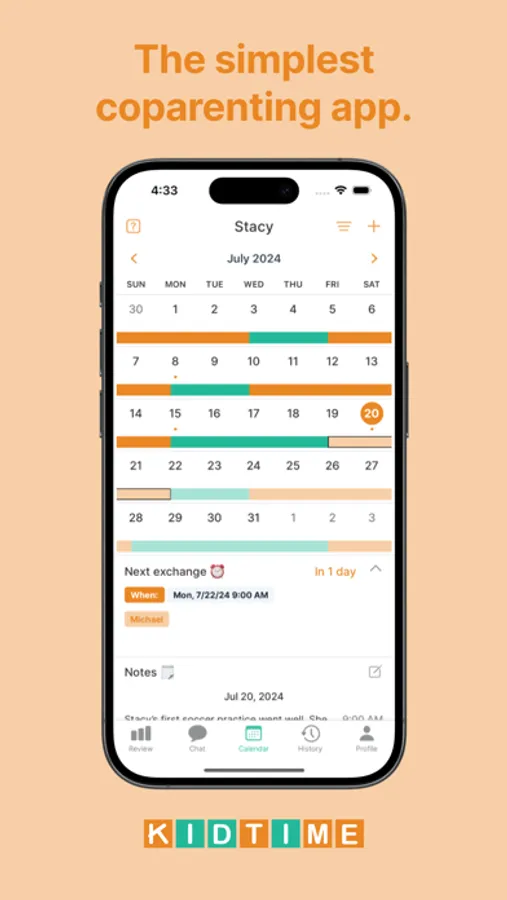 End schedule conflicts with a custody tracking calendar. Kidtime makes coparenting easier with the simplest custody calendar, accountability tools, notes, messaging, instant data export, and an ai coparent chat.