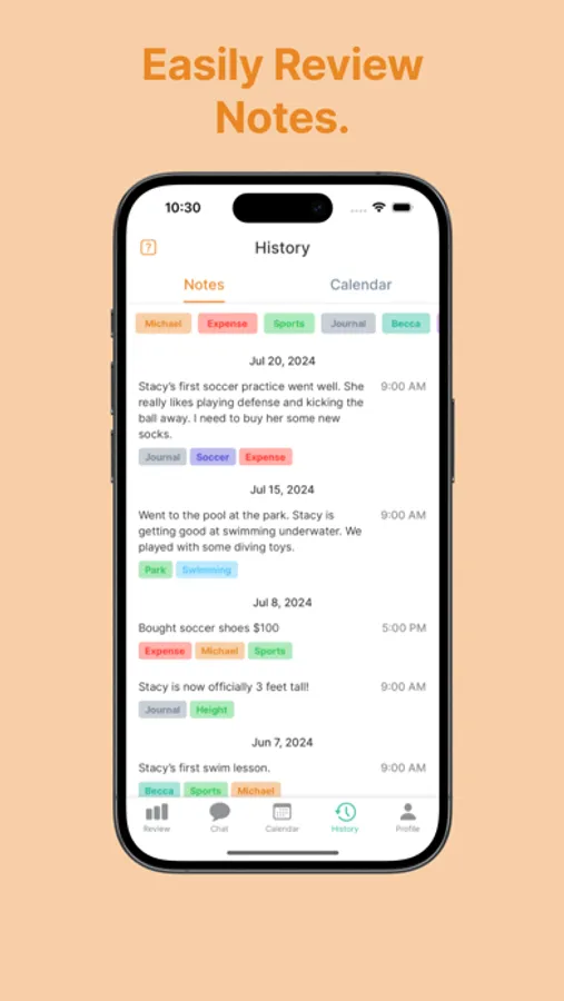 Save notes for yourself or your coparent. Tag them to help with searching later