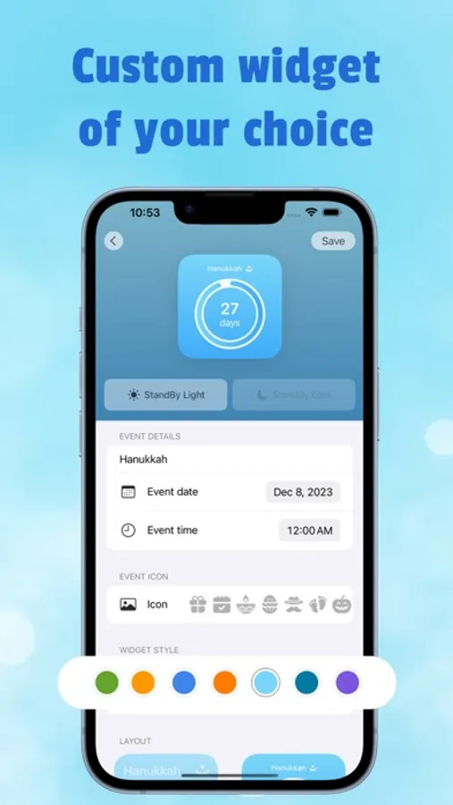 • Interactive Widgets: Place day-and-hour countdowns on your Home Screen in multiple sizes and styles.