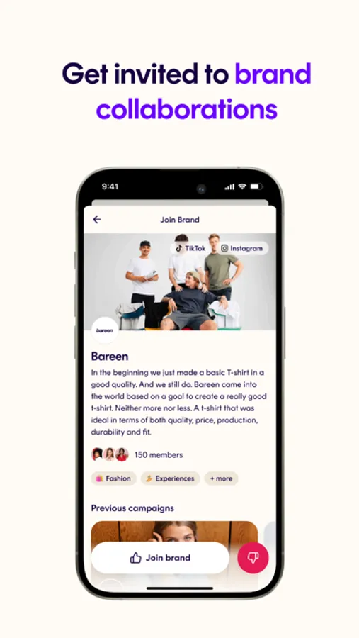 Through our app you are able to be apart of influencer teams where you will get the possibility to receive valuables/cash for doing posts and stories.