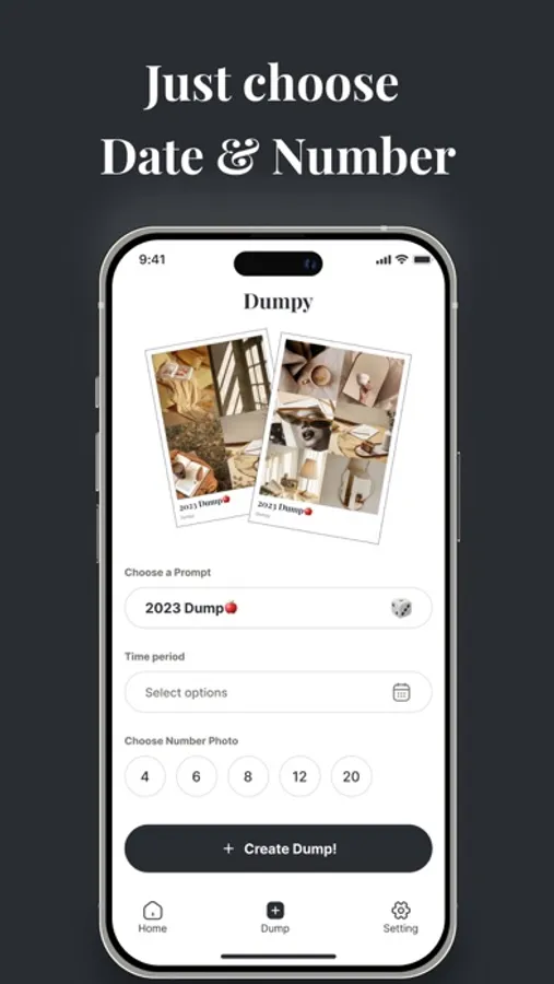 Effortlessly compile the best snapshots of your chosen dates. With advanced selection AI algorithms, Dumpy sifts through your memories to create stunning photo dumps that tell your story. Dive into nostalgia, share moments, and relive your highlights with just a tap. Download now and start showcasing your photographic journey!