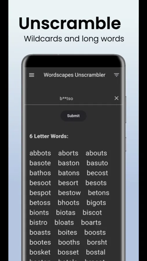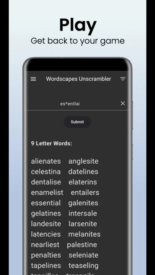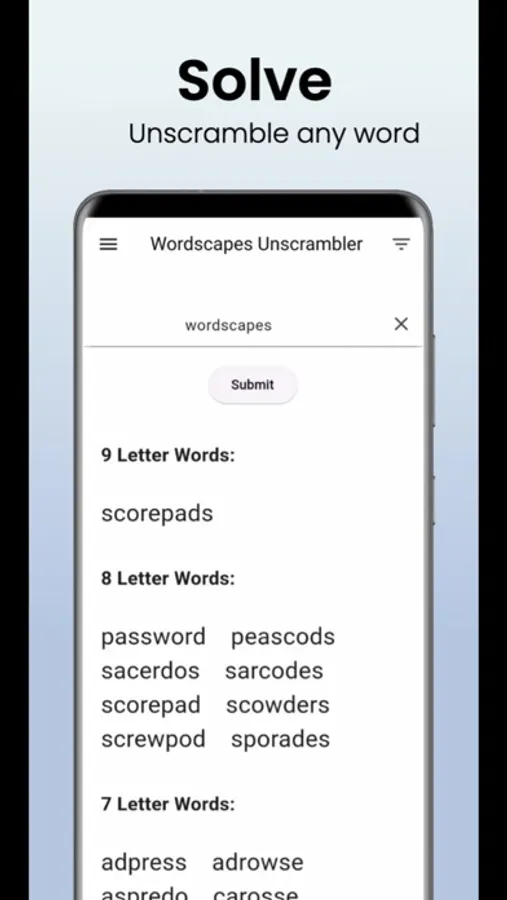 Word Game Solver: Just enter your scrambled letters into our powerful unscrambler, and get a list of all possible word combinations in an instant.