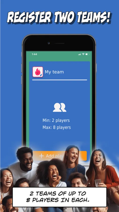 Create two teams and add up to 8 players per team.
