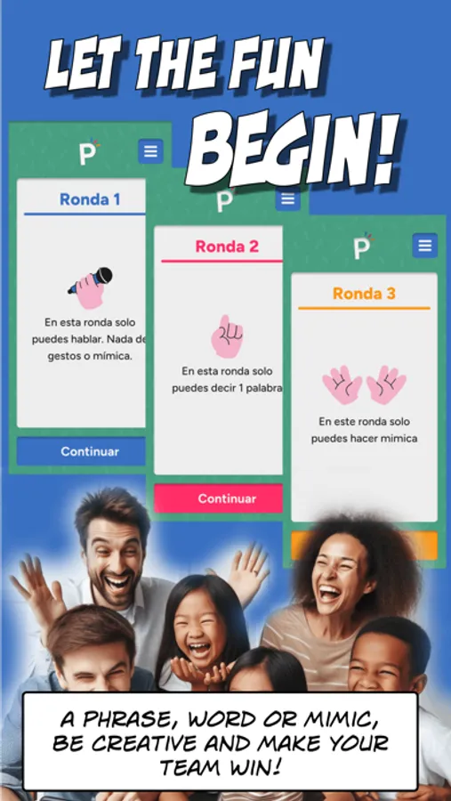 A word will appear on the screen, and with a sentence, your partner will explain the word to the members of his team without saying what is written on the papelito!