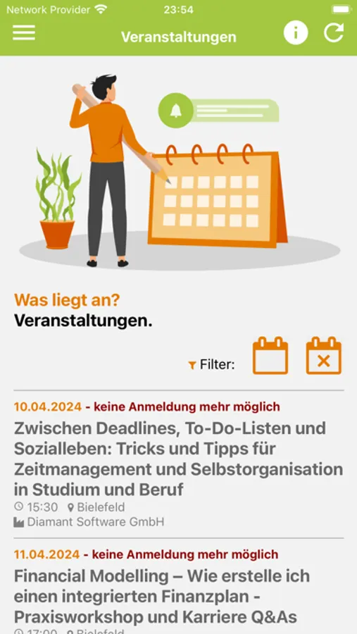 Anmeldung zu Events des ideellen Förderprogramms, wichtige Infos und