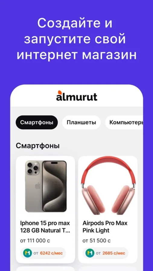 AIRUN - это мобильное приложение с которым за 1 день можно создать интернет-магазин для продажи товаров, услуг, курсов и цифровых продуктов.