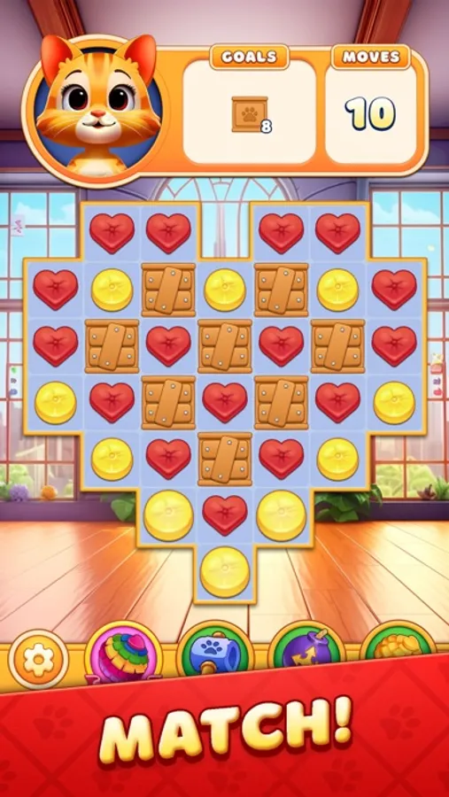 Embark on daily quests to earn valuable boosters that will help you on your journey. Whether you're solving one of the thousands of puzzle challenges or defending your home from rodent invaders, Cat Crunch offers endless entertainment.