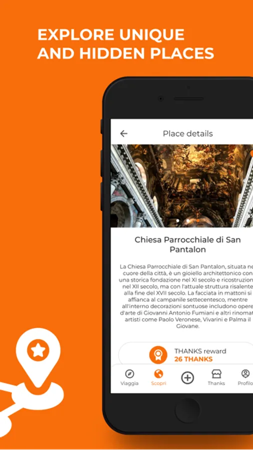 Collect THANKS tokens at each stop on your itinerary and when you make a purchase. Use the THANKS collected to get fantastic content and audio about the city, discovering interesting curiosities and secrets that only true locals know.