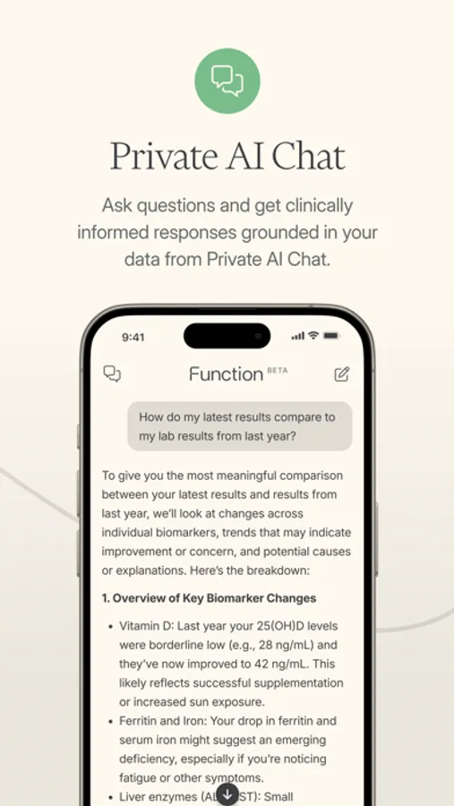 Ask questions about your results, identify meaningful patterns, and figure out where to focus next, with Private AI Chat—built in partnership with top clinicians.