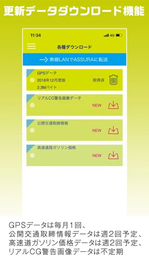 最新のGPSデータ、リアルCG警告用画像データ、公開交通取締情報データ、高速道ガソリンスタンド価格案内データ(対象機種)を無料でダウンロードできます。パソコン要らずでどこでもダウンロードすることができます。