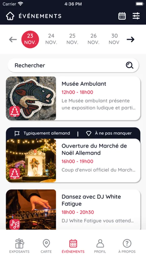 • Consultez notre liste d’exposants passionnés qui vous offrent des produits artisanaux, des produits du terroir et des importations allemandes exclusives;