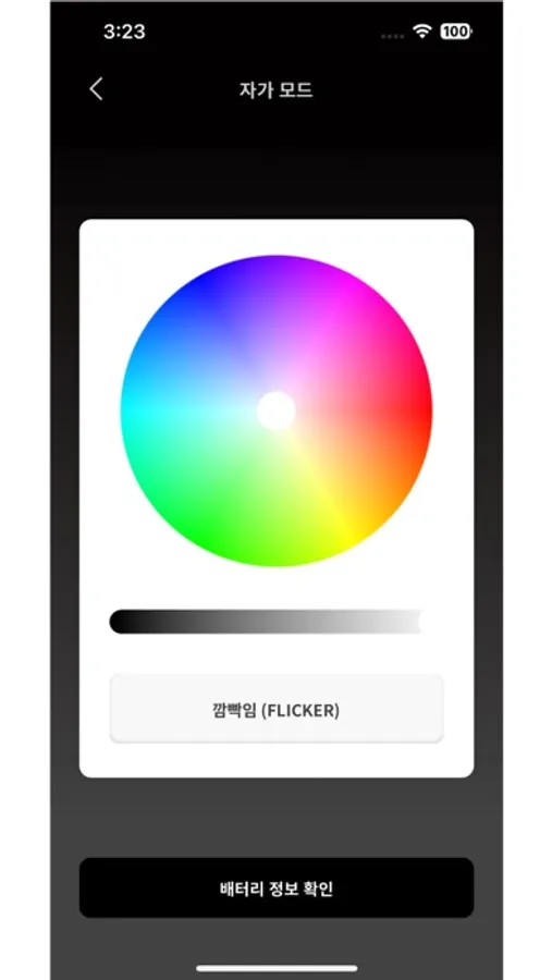 In the “SELF MODE” page of the app, click the “Check Battery Status” button at the bottom of the screen to check the battery level of your light stick and replace the battery if needed.