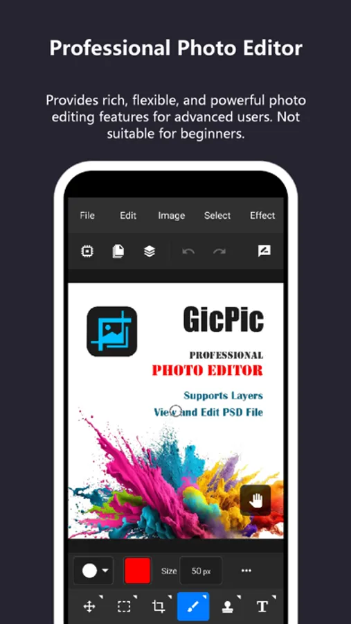 TinyPs is a professional photo editor, formerly known as GicPic. It is aimed at professional users and is not suitable for beginners. TinyPs aims to enable advanced users to use their desktop experience and skills in a familiar way on mobile devices, quickly completing more complex image editing tasks, reducing learning and adaptation time and costs. TinyPs provides a rich and flexible set of tools, allowing users to edit images more independently, controllably, and precisely.