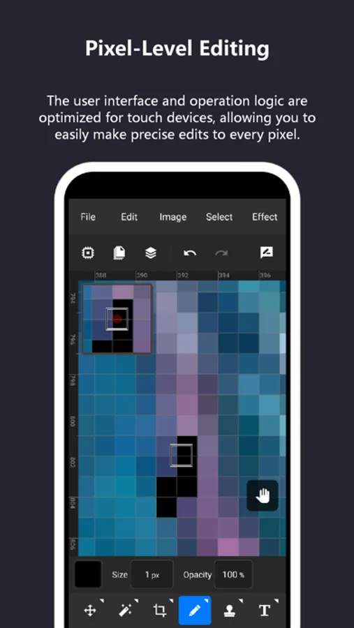 TinyPs supports pixel-level image editing, allowing precise control over each pixel. With tools like rulers, grids, and magnifiers, precise operations can be easily achieved.