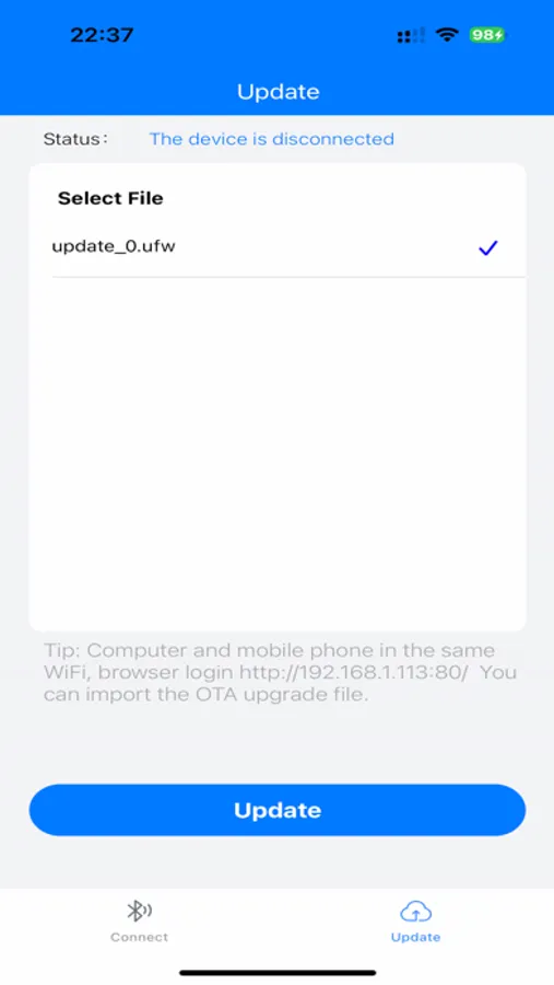 You can use this app to update your heating sock Bluetooth device for better use and control of heating sock devices