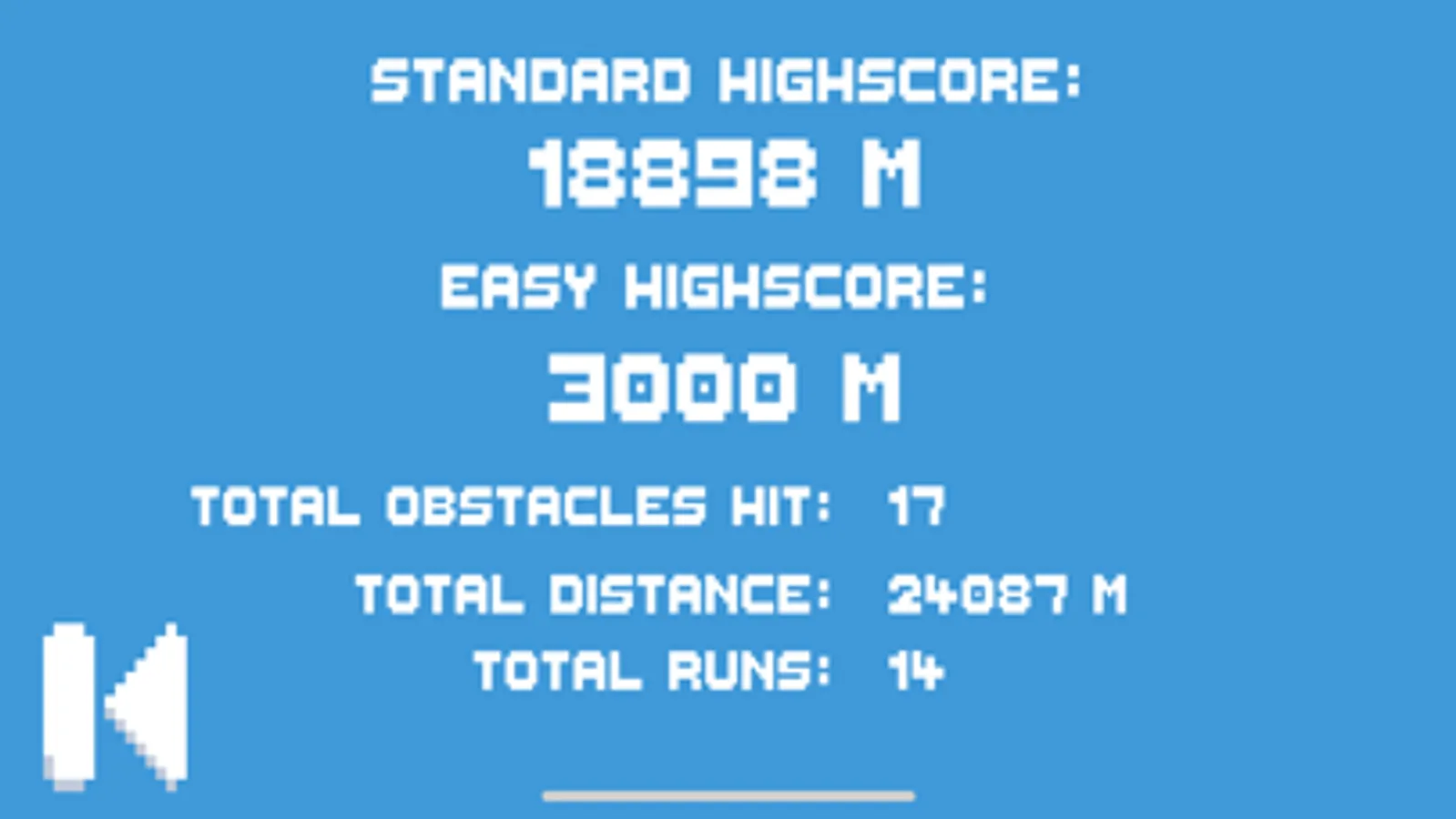 -Statistic tracking for the number of runs, total distance ran, and the total amount of obstacles hit.