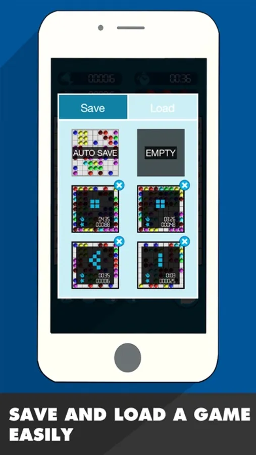 - For LINE mode: make score by arranging 5 or more balls of the same color consecutively in straight lines (vertically, horizontally or diagonally)