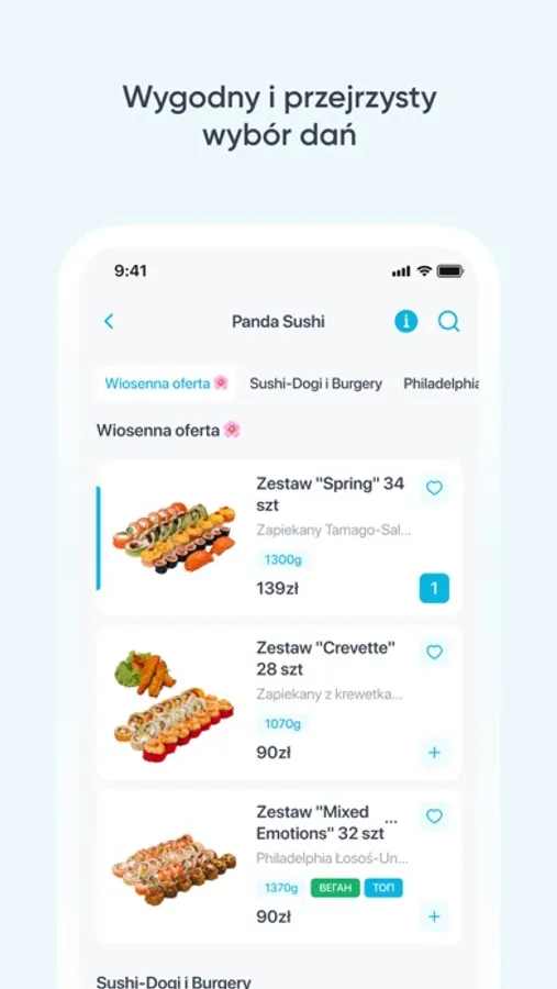 Z Panda Sushi będziesz mógł zamówić zarówno klasyczne rolki i sushi, jak i te przygotowane według naszych autorskich receptur. Gotujemy tylko z wysokiej jakości produktów i świeżych składników. Rozmiary porcji cię pozytywnie zaskoczą. W naszej ofercie znajdziesz sushi, rolki, zestawy, przekąski, desery i napoje na każdy gust.