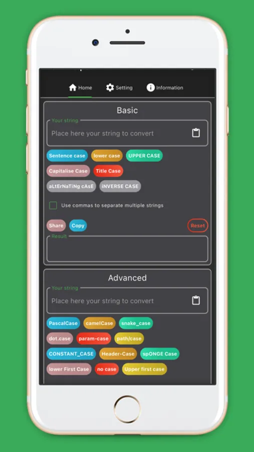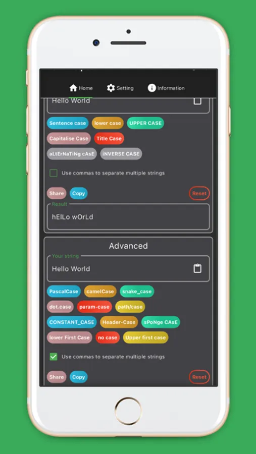 - Supports 19+ most popular convert case currently: Alternating case, Camel case, Capitalise case, Constant case, Dot case, Header case, Inverse case, Lower case, Lower first case, No case, Param case, Pascal case, Path case, Sentence case, Snake case, Sponge case, Title case, Upper case, Upper first case