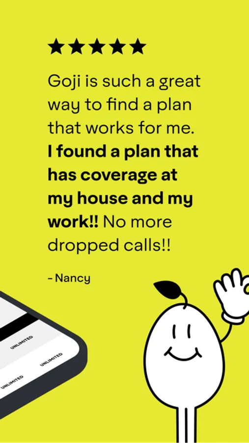 I love how easy and fun it is to find a plan with Goji. After answering some questions, the recommendations it gives are great options. The coverage map is also great! It is so detailed and it has helped me find which provider has the best service at my home. I will be recommending this app to my friends who are looking for new plans!