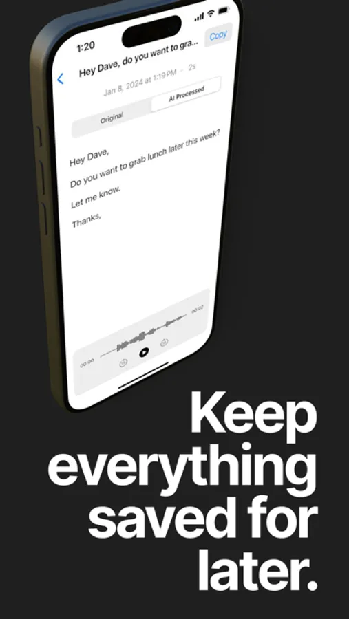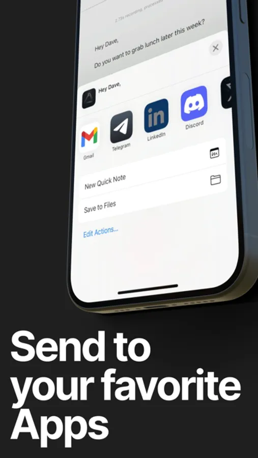Easily transform voice notes into any format. Go for a walk, think aloud, and have your notes summarized. Or write a long, professional email from a single spoken sentence.
