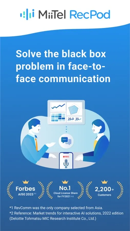 MiiTel RecPod is an offline meeting recorder, the newest service provided by RevComm Inc.