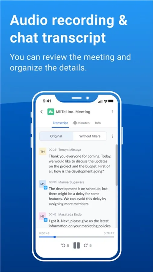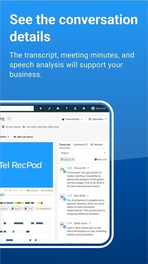 You will use this app to record the meeting and upload the audio data so that you can analyze the voices on the MiiTel platform.