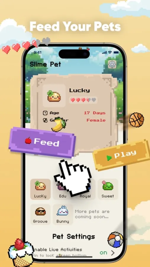 Slime Pets also provides fun mini-games where you can play volleyball, basketball, yarn and duck toy with your pets, making you feel like they are always by your side. You can also add pet widgets to your home screen and watch them walk and play on the screen, adding fun to your daily life.