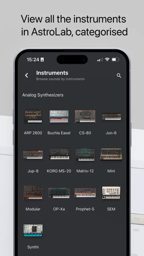 • Browse sounds by type, instrument, artist and style