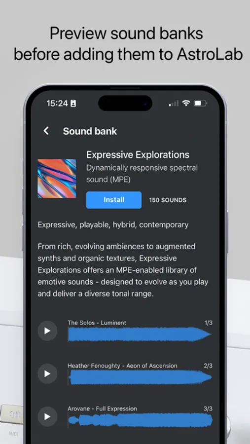 Prepare a playlist right before a gig, search and select sounds with the ease and fluidity of a mobile interface and expand your library.