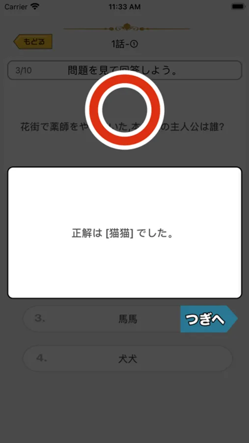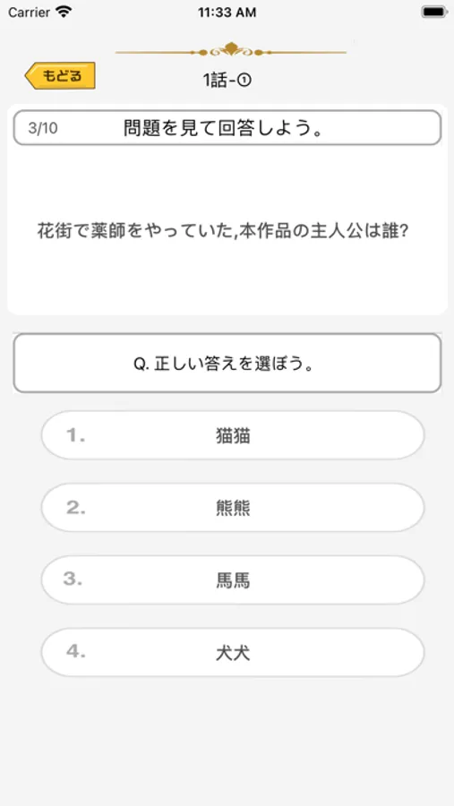 4択問題でサクサク回答!猫猫や壬氏など人気キャラも登場。