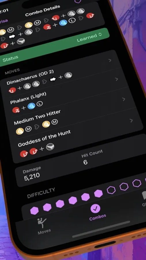 ■ Explore Moves: Get a detailed, up-to-date rundown of the entire moveset of the game's cast, complete with frame, damage, and meter data.