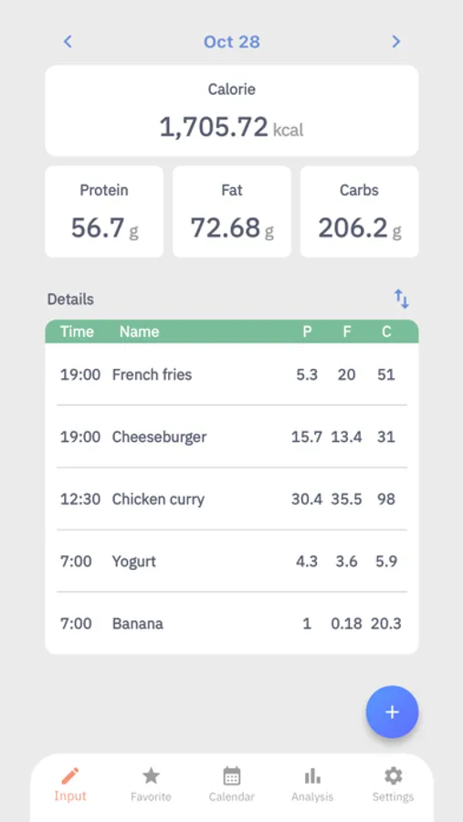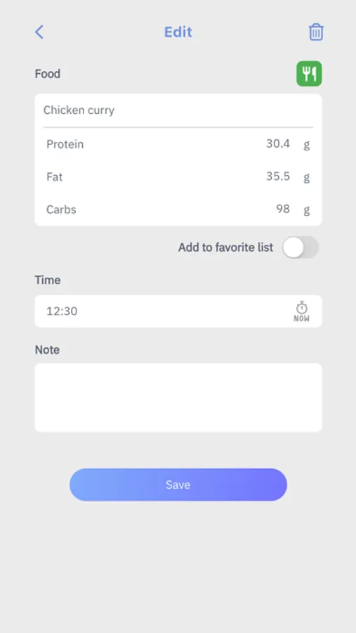 Just open the app, enter the food you ate and its PFC amount, and tap the save button.