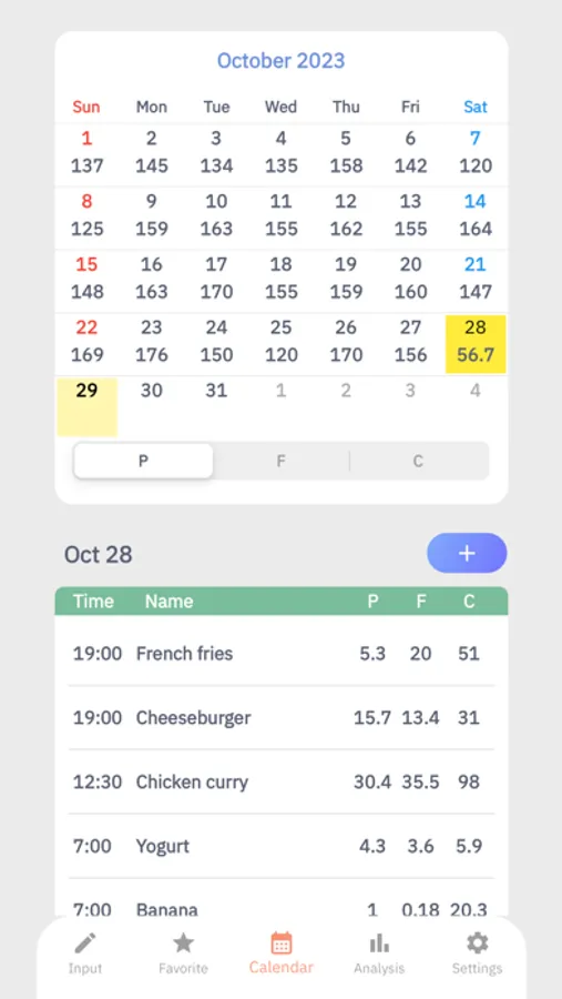 An app that allows you to record, manage, and analyze your daily protein(P) intake, fat(F) intake and carbohydrate(C) intake.